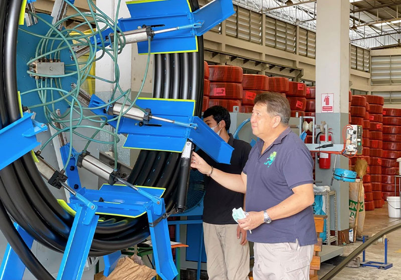 โดยการสนับสนุนจ้างงานในชุมชนในขณะนี้มีอยู่ประมาณ 10 ชุมชน กับอีกกว่า 30 ครัวเรือน เป็นการส่งผลิตภัณฑ์ของโรงงานเพื่อประกอบอุปกรณ์สปริงเกลอร์ โดยส่งผ่านหัวหน้าชุมชนเป็นหลัก ซึ่งชุมชนที่ส่งไปส่วนใหญ่จะเป็นผู้สูงอายุ ซึ่งจะทำให้กลุ่มผู้สูงอายุมีงานทำและมีรายได้เพิ่มขึ้น