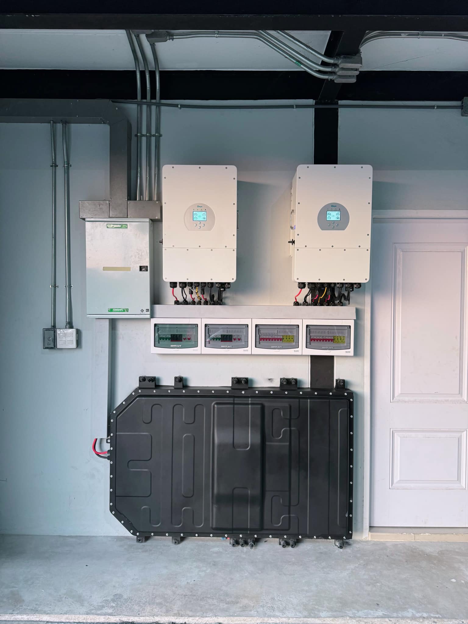 สำหรับระบบดังกล่าวเป็นระบบ On/Off Grid ที่มาพร้อมแผงโซลาร์เซลล์ขนาด 27 kW คู่กับแบตเตอรี่รถ EV ขนาด 40 kW (มาจากรถ Neta V) ทำงานผ่านอินเวอร์เตอร์ 20 kW แบบ 3p โดยแบตเตอรี่ที่นำมาใช้เป็นแบตเตอรี่ EV เก่า ที่ยังคงประสิทธิภาพกว่า 80% (จากการวัดความจุของแบตเตอรี่ SOH) ซึ่งเมื่อได้มาจะมีการจัดการแรงดันให้เข้ากับอินเวอร์เตอร์ที่ติดตั้ง มีให้เลือกตั้งแต่ระดับ 48V จนถึงระดับ 1000V ขึ้นอยู่กับขนาดของแบตเตอรี่และวัตถุประสงค์ในการใช้งาน