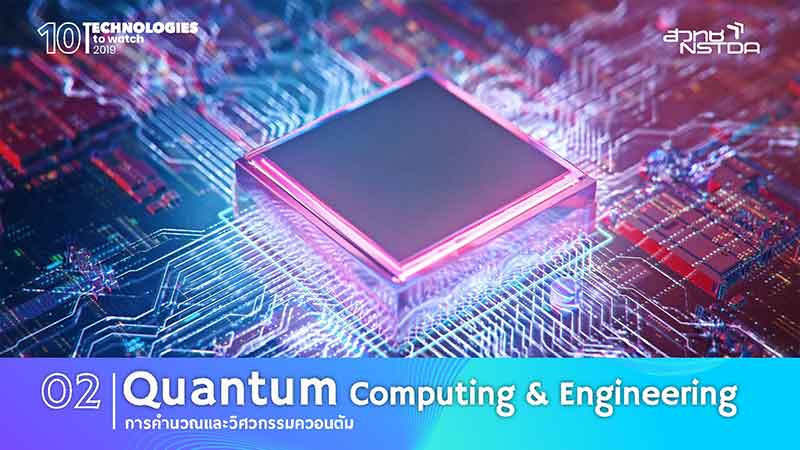 2. การคำนวณและวิศวกรรมควอนตัม (Quantum Computing & Engineering) : ทศวรรษหน้าโลกจะสามารถรองรับข้อมูลข่าวสารที่เพิ่มขึ้น ประกอบกับโจทย์ปัญหาต่าง ๆ ที่ละเอียดและยากยิ่งขึ้น ด้วยเหตุนี้เราจึงต้องการหน่วยประมวลผลที่ดีขึ้น เทคโนโลยีควอนตัมจะเข้ามามีบทบาททำให้ภาพที่เราจินตนาการไว้เกิดขึ้นได้จริง เช่น คอมพิวเตอร์สามารถเพิ่มประสิทธิภาพให้ดีขึ้นหลายพันเท่าสามารถถอดรหัสดีเอ็นเอของสิ่งมีชีวิตที่ยาวมากเป็นพัน ๆ ล้านหน่วย สามารถสร้างแบบจำลองเพื่อค้นหายาใหม่ ๆ ที่ใช้ได้อย่างแม่นยำกับผู้ป่วย ใช้ตรวจวินิจฉัยโรคในการแพทย์ได้อย่างรวดเร็วไม่ต้องรอผลแล็บหลายวัน รวมถึงยังมีการสร้างอุปกรณ์ไฮเทคอื่น ๆ เช่น ชิปสำหรับนาฬิกาอะตอม (Atomic Clock) ใช้เทียบค่าเวลาสากลที่มีความแม่นยำมาก ถึงระดับนาโนวินาที (nano-second) รองรับการซื้อขายในระบบธนาคาร หรือคำสั่งซื้อในตลาดหลักทรัพย์ที่มีปริมาณถึง 100 ล้านคำสั่งต่อวินาทีได้