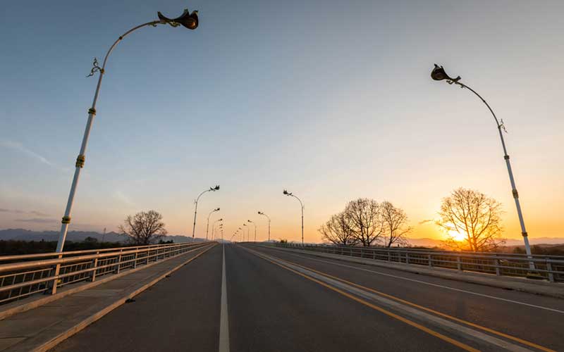 บริเวณก่อนขึ้นสะพานจะทำทางสลับเลน เนื่องจากปัจจุบันถนนในเมียนมารถวิ่งเลนซ้าย