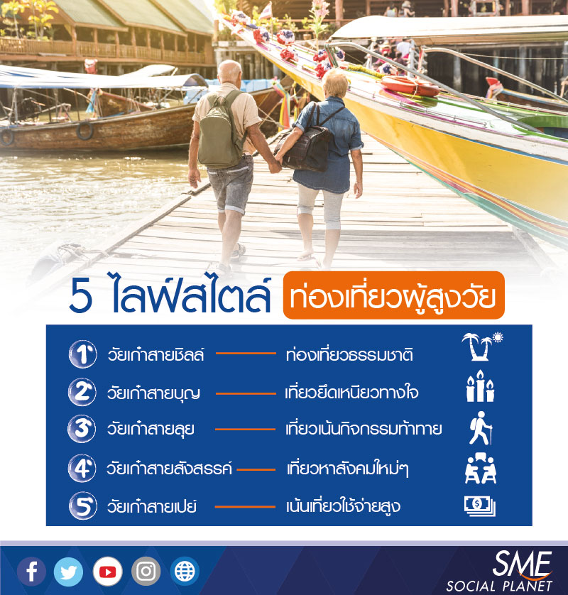 ทัวร์ผู้สูงวัยจึงกลายเป็นตลาดใหม่มาแรงและมีแนวโน้มเติบโตไม่หยุดเพราะในช่วงวัยเกษียณ ชีวิตใกล้ฝั่ง กลุ่มนักท่องเที่ยวของผู้สูงอายุส่วนใหญ่ต้องการเดินทางไปท่องเที่ยวเพื่อการพักผ่อนเพราะนอกจากได้คลายความเหงาแล้วยังเป็นการปลดปล่อยความเครียดไปในตัวได้ชมความสวยงามของทิวทัศน์ธรรมชาติ ใช้ชีวิตแบบสโลว์ไลฟ์ ไม่ต้องรีบแรง ทำให้รู้สึกมีความสุข