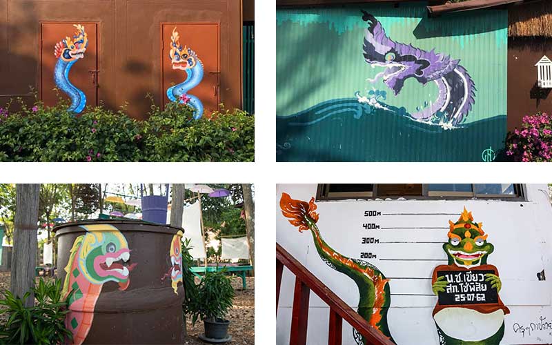 เป็นกราฟฟิตี้อันงดงาม โดยผลงานเหล่านี้เขียนไว้ตามบ้าน วัด โรงเรียน ฯลฯ. เพื่อสร้างจุดแข็งให้การท่องเที่ยวชุมชนในเชิงสร้างสรรค์ ซึ่งส่วนใหญ่นักท่องเที่ยวที่ไปเยือนหมู่บ้านแห่งนี้จะสนุกกับการเดินค้นหาภาพพญานาคไปในหมู่บ้านเพื่อถ่ายรูปสวยๆ