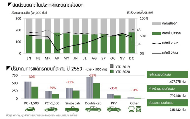 สถาบันยานยนต์ ซึ่งได้มีการสรุปสภาวะอุตสาหกรรมยานยนต์ไทย ปี พ.ศ.2563 ว่าประเทศไทยมีปริมาณการผลิตรถยนต์