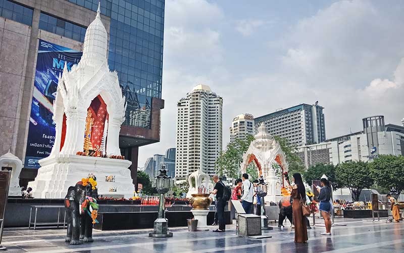 ศาลพระตรีมูรติ ที่คนนิยมมาขอเนื้อคู่มากที่สุด เป็นศาลที่ตั้งอยู่ตรงลานหน้าห้าง Central World ฝั่งอิเซตัน ทุกๆ วันจะมีหนุ่มโสดสาวโสดทั้งคนไทยและชาวต่างประเทศนิยมไปไหว้เพื่อขอเนื้อคู่กันวันละเป็นหมื่นคน ใครจะขอเนื้อคู่ให้โดนให้ปัง แนะนำให้ไปวันพฤหัสบดี เวลา 21.30 น. เพราะเป็นเวลาที่องค์พระตรีมูรติเสด็จมาโปรดเพื่อรับคำอธิษฐาน และหากได้คู่สมดังหวังแล้ว ให้นำสิ่งของมาถวายดังนี้ มะพร้าว น้ำอ้อย นมสด หรือของหวานชนิดใดก็ได้