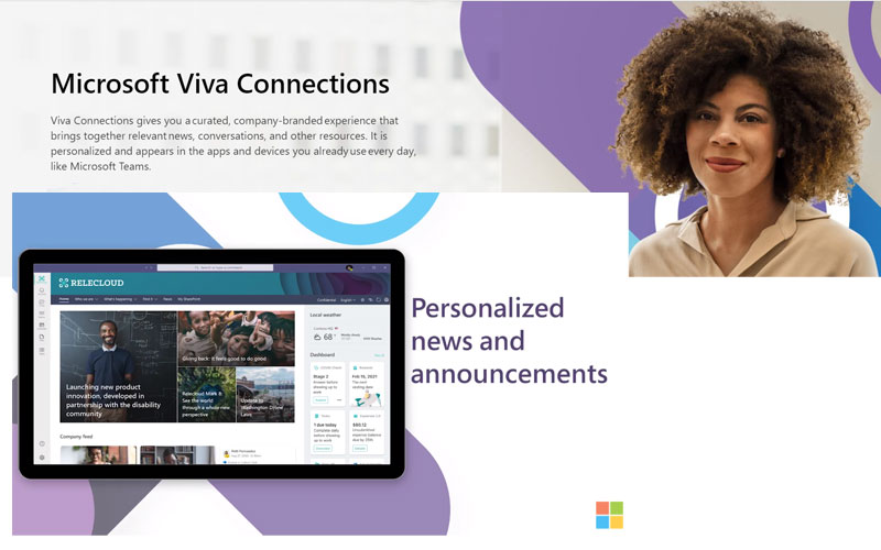 1. Viva Connections เปิดประตูสู่พื้นที่ทำงานในโลกดิจิทัลที่พร้อมสรรพไม่แพ้ออฟฟิศจริง ให้พนักงานสามารถเข้าถึงประกาศและการสื่อสารต่างๆ ภายในองค์กร รวมถึงข้อมูลพื้นฐานภายในบริษัทอย่างนโยบายองค์กร สวัสดิการ หรือการมีส่วนร่วมในกลุ่มกิจกรรมของเพื่อนพนักงาน โดยทำได้ทั้งหมดนี้จากแอปเดียวใน Microsoft Teams ซึ่งสามารถปรับแต่งให้เข้ากับความถนัดของผู้ใช้ได้ แอป Connections นี้จะเปิดใช้งานใน Teams เวอร์ชันเดสก์ท็อปในรูปแบบพรีวิวสำหรับผู้ใช้ทั่วไปตั้งแต่เดือนหน้าเป็นต้นไป ก่อนที่จะเปิดตัวแอปพลิเคชันมือถือในปีนี้