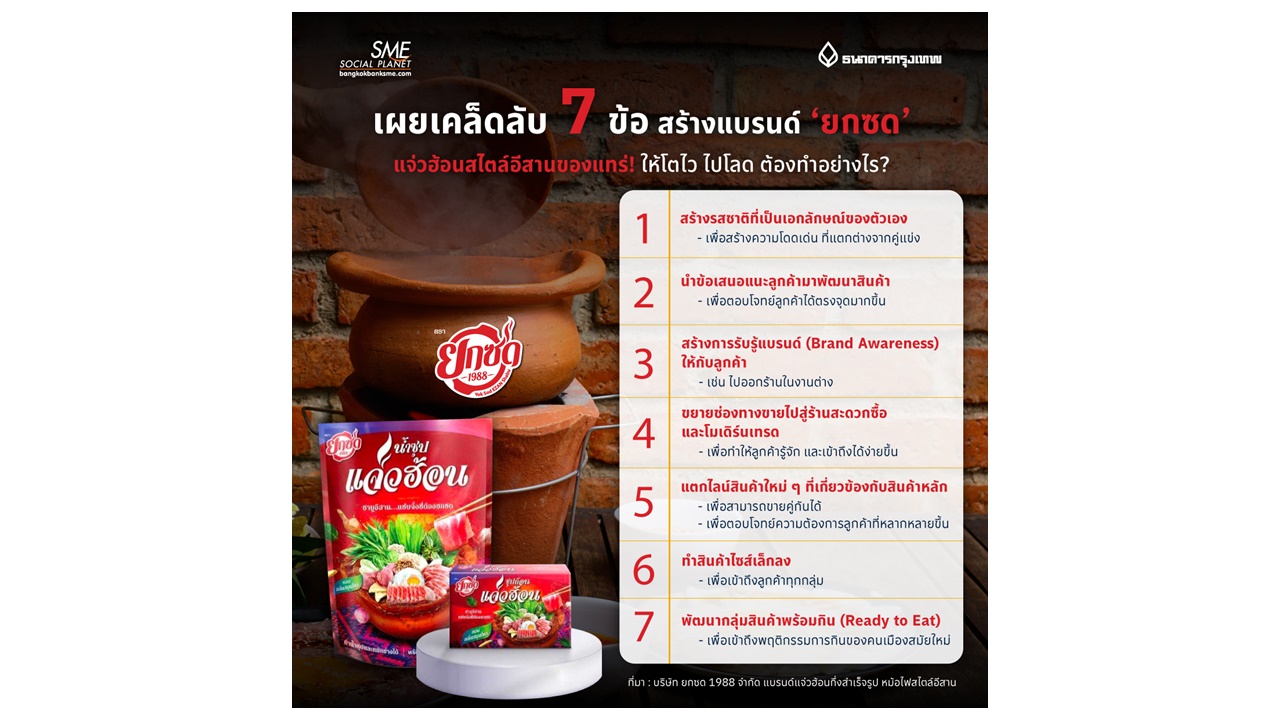 #อาหาร #แจ่วฮ้อน #อาหารกึ่งสำเร็จรูป #สร้างแบรนด์ #ธุรกิจB2B #แนวคิดธุรกิจ #หม้อไฟอีสาน #ยกซด #อาหารพร้อมปรุง #ความสำเร็จ #ReadyToEat #ReadyToCook #Food #bangkokbank #bangkokbanksme #sme #เพื่อนคู่คิดธุรกิจsme