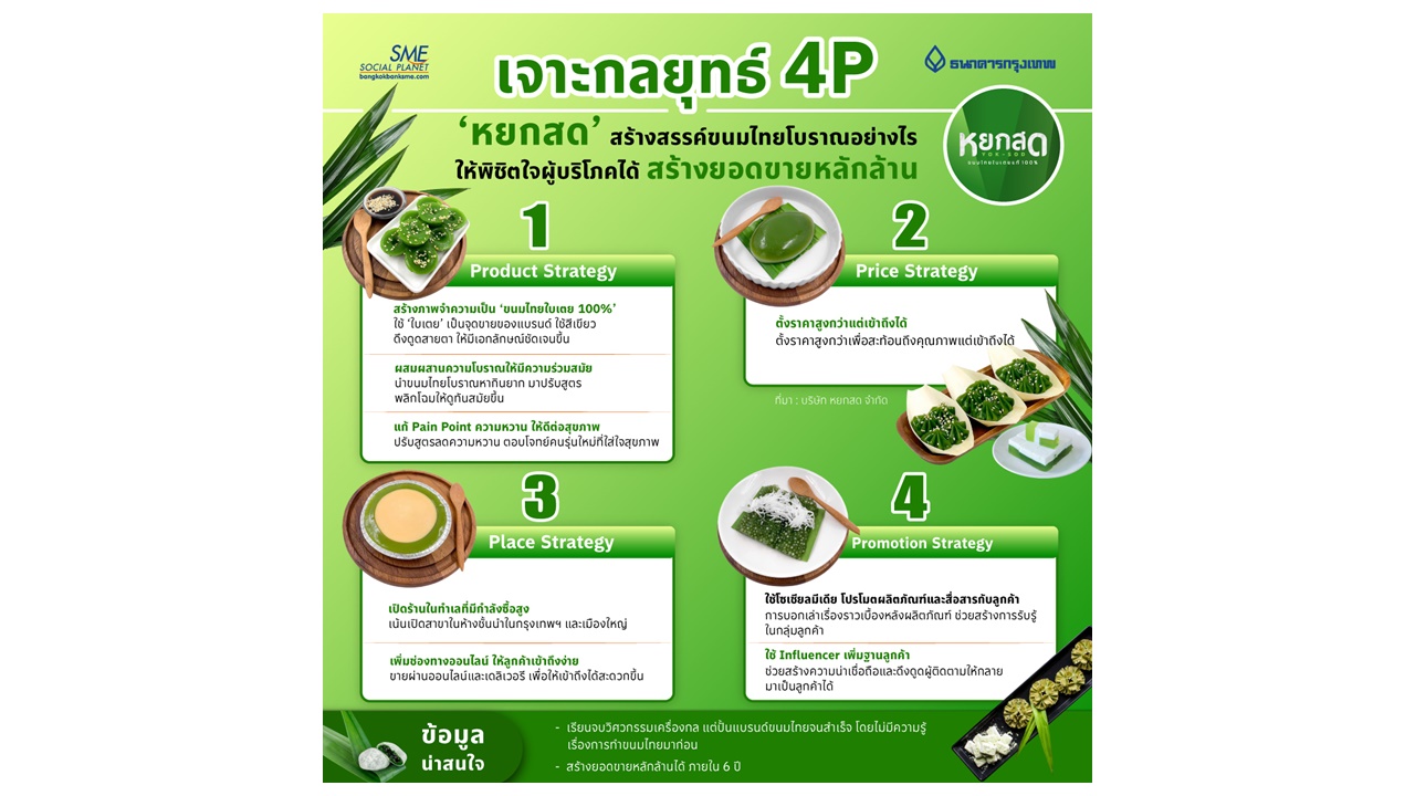 เจาะกลยุทธ์ 4P “หยกสด” สร้างสรรค์ขนมไทยโบราณอย่างไร ให้พิชิตใจผู้บริโภคได้ สร้างยอดขายหลักล้าน?