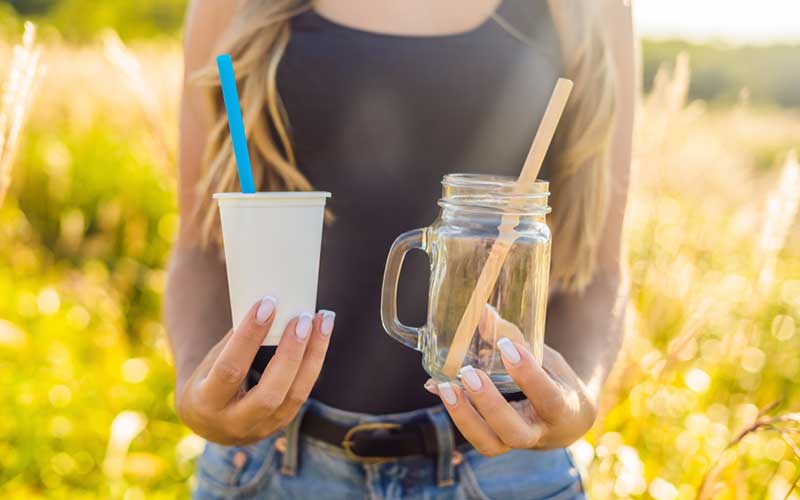 เช่น หลอดทำจากไม้ไผ่และแป้งข้าว