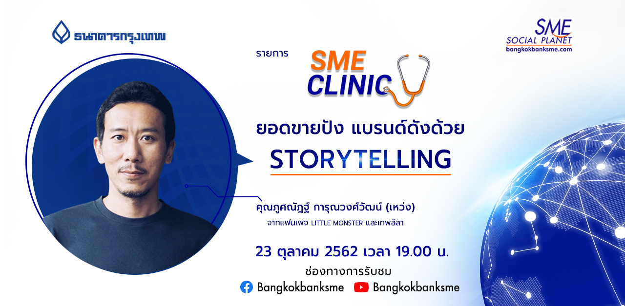 พลาดไม่ได้กับวิธีการทำการตลาดแบบมัดใจผู้บริโภค "ยอดขายปัง แบรนด์ดังด้วย Storytelling" โดยคุณเหว่ง ภูศณัฎฐ์ การุณวงศ์วัฒน์ จากแฟนเพจ Little Monster และเทพลีลา
