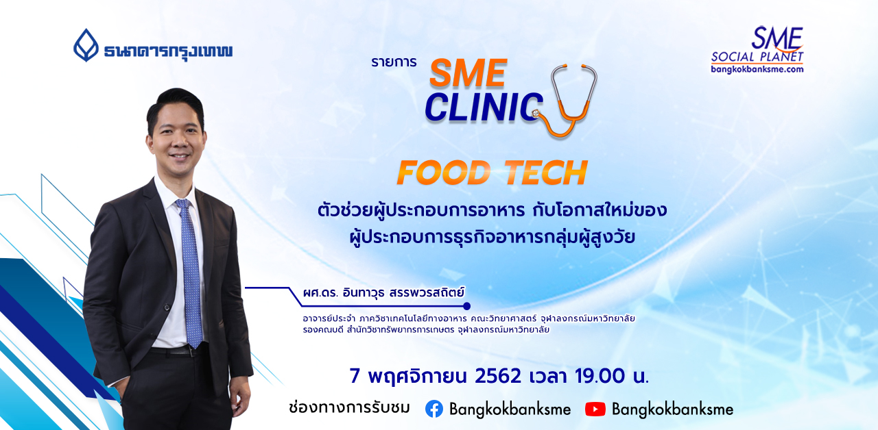 SME Clinic ตอน Food Tech ตัวช่วยผู้ประกอบการอาหารกับโอกาสใหม่ของผู้ประกอบการธุรกิจอาหารกลุ่มผู้สูงอายุ