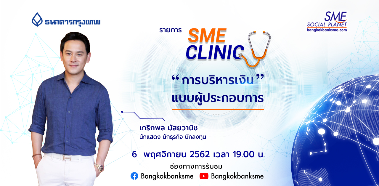 เจาะทริคเด็ดเคล็ดลับ "การบริหารเงินแบบผู้ประกอบการ" อย่างเข้าใจและนำไปใช้ได้จริง กับ ฟลุค-เกริกพล มัสยวาณิช นักแสดง นักธุรกิจ และนักลงทุนตัวจริงเสียงจริง ติดตามได้ในรายการ SME Clinic วันพุธที่ 6 พฤศจิกายน 2562 เวลา 19.00 น. ทาง Facebook Fanpage bangkokbanksme