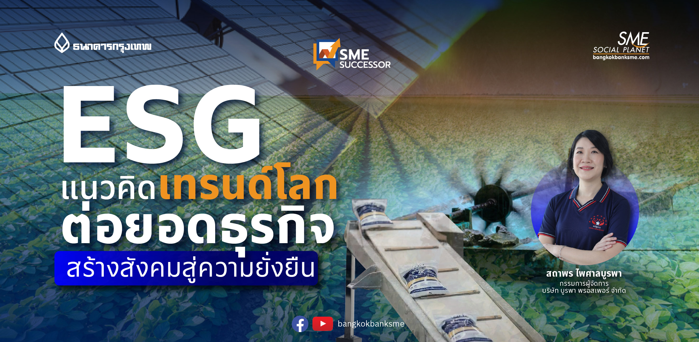 ติดตาม โอกาส และความท้าทายของธุรกิจด้วยแนวคิด ESG ของ แป้งข้าวตราหมีคู่ดาว ไปกับ คุณสถาพร ไพศาลบูรพา กรรมการผู้จัดการ บริษัท บูรพา พรอสเพอร์ จำกัด ในรายการ SME Successor ตอน : ESG แนวคิดเทรนด์โลก ต่อยอดธุรกิจ