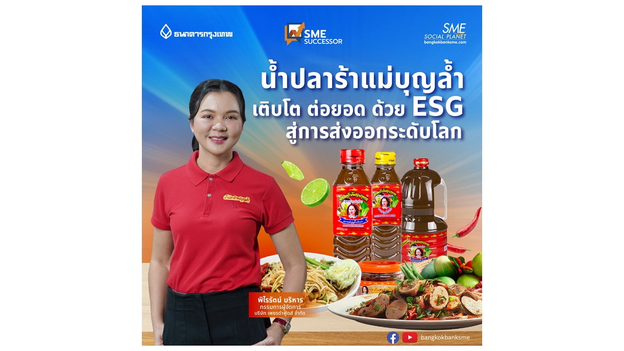 ติดตามแนวคิดธุรกิจจากสินค้าในครัวเรือนสู่ตลาดส่งออกระดับโลก โดยคุณพิไรรัตน์ บริหาร กรรมการผู้จัดการ บริษัท เพชรดำฟู้ดส์ จำกัด เจ้าของแบรนด์ น้ำปลาร้าแม่บุญล้ำ ในรายการ SME Successor ตอน น้ำปลาร้าแม่บุญล้ำ เติบโต ต่อยอด ด้วย ESG สู่การส่งออกระดับโลก ทาง bangkokbanksme