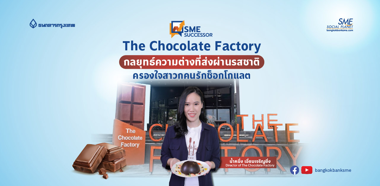 เส้นทางความสำเร็จของ The Chocolate Factory ร้านช็อกโกแลตพรีเมี่ยม ที่มีจุดเริ่มต้นจากความชอบ เป็นแรงผลักดันสร้างสรรค์เมนูใหม่ๆ ที่แตกต่างจากคู่แข่ง ด้วยกลยุทธ์ Differentiation พร้อมเกมรุกพื้นที่หัวเมืองท่องเที่ยว เพื่อการเข้าถึงง่ายของลูกค้า จนกลายเป็นร้านขนมในดวงใจของสาวกคนรักช็อกโกแลต