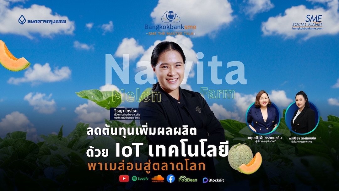 พบกับเรื่องราวของ "นาวิต้าฟาร์ม" ฟาร์มเมล่อนพรีเมียมที่ส่งออกสู่ตลาดต่างประเทศ ด้วยการนำเทคโนโลยี IoT มาปรับใช้ในการบริหารจัดการฟาร์มแบบอัจฉริยะ ไม่ว่าจะเป็นการควบคุมระบบน้ำ ปุ๋ย และการตรวจสอบสภาพแวดล้อมผ่านเซ็นเซอร์ที่ช่วยให้การทำเกษตรแม่นยำขึ้น ช่วยลดต้นทุน และเพิ่มผลผลิตให้กับฟาร์ม