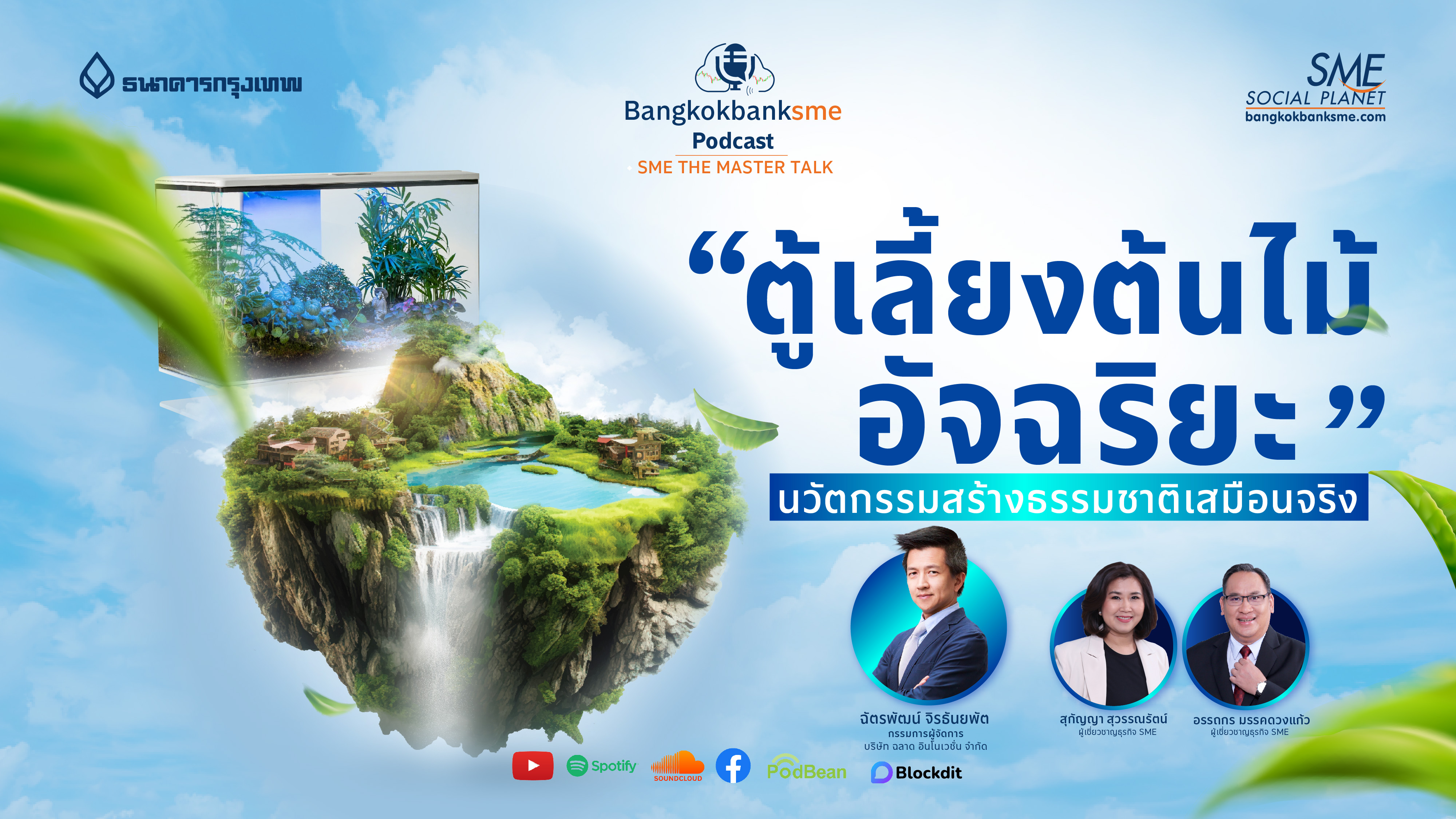 พบกับผู้คิดค้นนวัตกรรมสุดล้ำฝีมือคนไทย SMARTTERRA ตู้เลี้ยงต้นไม้อัจฉริยะ คุณฉัตรพัฒน์ จิรธันยพัต กรรมการผู้จัดการ บริษัท ฉลาด อินโนเวชั่น จํากัด และผู้เชี่ยวชาญธุรกิจ SME ธนาคารกรุงเทพ คุณสุกัญญา สุวรรณรัตน์ และ คุณอรรถกร มรรคดวงแก้ว ใน SME The Master Talk ตอน ตู้เลี้ยงต้นไม้อัจฉริยะ นวัตกรรมสร้างธรรมชาติ เสมือนจริง ทาง bangkokbanksme