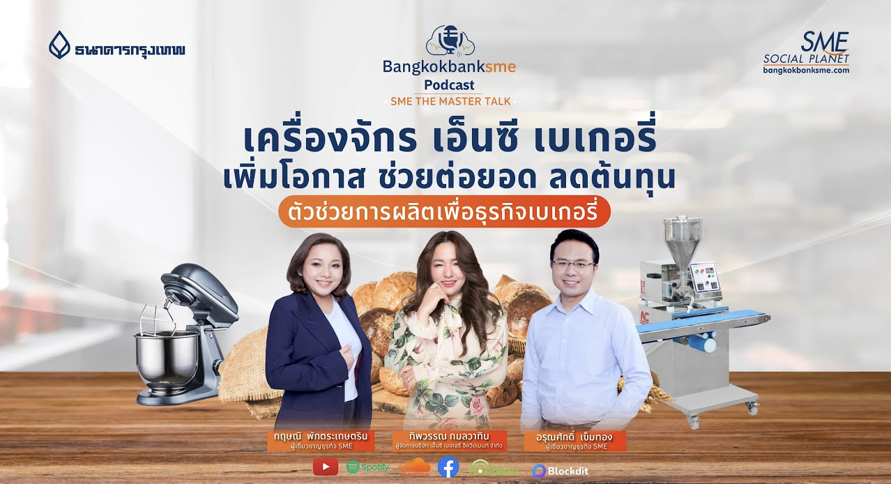 ทำความรู้จัก เครื่องจักร เอ็นซี เบเกอรี่ ไปกับ คุณทิพวรรณ กมลวาทิน ผู้จัดการบริษัท เอ็นซี เบเกอรี่ อีควิปเมนท์ จำกัด และผู้เชี่ยวชาญธุรกิจ SME ธนาคารกรุงเทพ คุณกฤษณี พักตระเกษตริน และ คุณอรุณศักดิ์ เข็มทอง